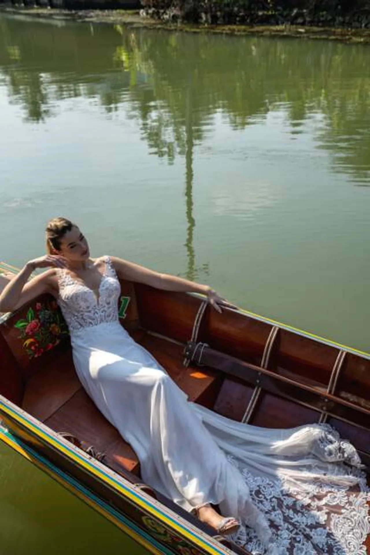Cette robe de mariée fluide se distingue par son élégance naturelle et son raffinement léger, idéale pour une cérémonie romantique, notamment dans un décor en plein air, au bord de l’eau ou dans un cadre exotique. Sa coupe fluide de style A-line épouse délicatement la silhouette sans la contraindre, offrant une allure à la fois gracieuse et confortable. Le bustier est travaillé avec une dentelle délicate et détaillée, composée de motifs floraux qui apportent une touche de sophistication. Le décolleté en V profond souligne harmonieusement la poitrine, créant un effet féminin et moderne, tandis que les bretelles en dentelle ajoutent de la finesse à la structure de la robe.