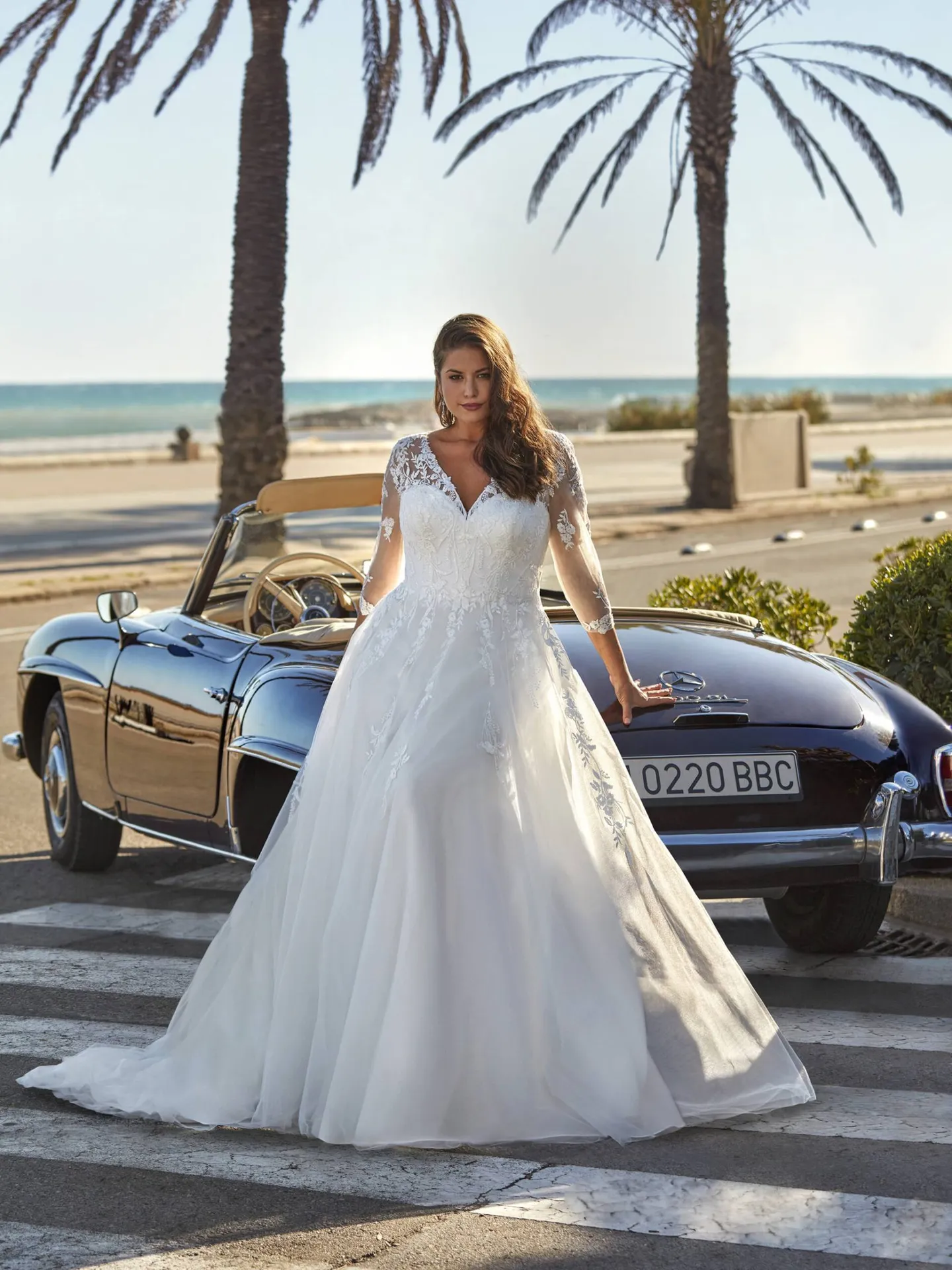 Robe de mariée grande taille avec manches longues à Plan de Campagne – Maelia Mariage, élégance et confort toute l’année