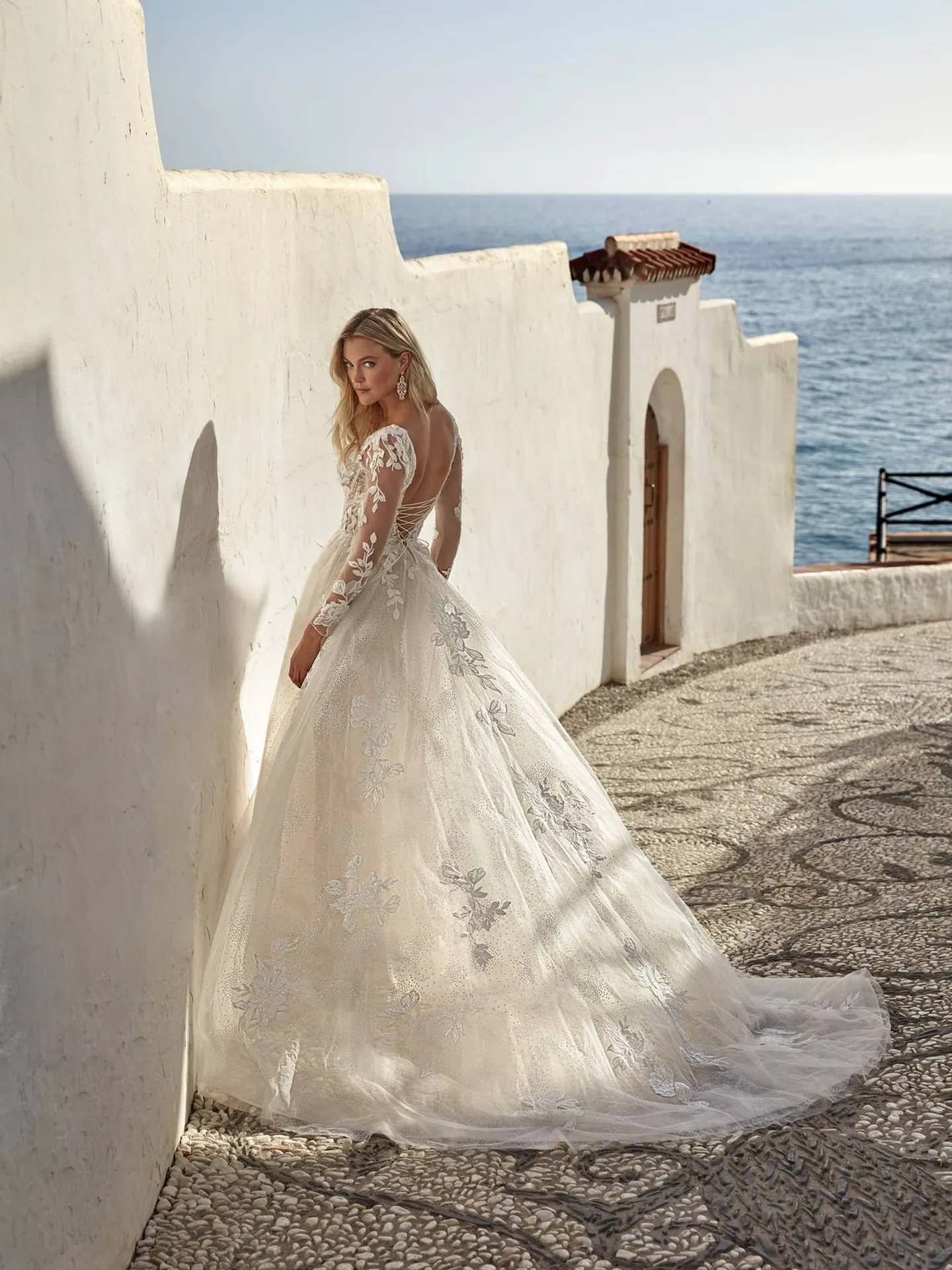 Les manches longues, délicatement travaillées, apportent une touche raffinée et poétique. Selon les modèles, elles peuvent être en dentelle transparente, ornées de motifs floraux, ou en tissu léger qui souligne la fluidité de la robe. Elles structurent la silhouette tout en créant une allure romantique, idéale pour les cérémonies automnales, hivernales ou en extérieur.