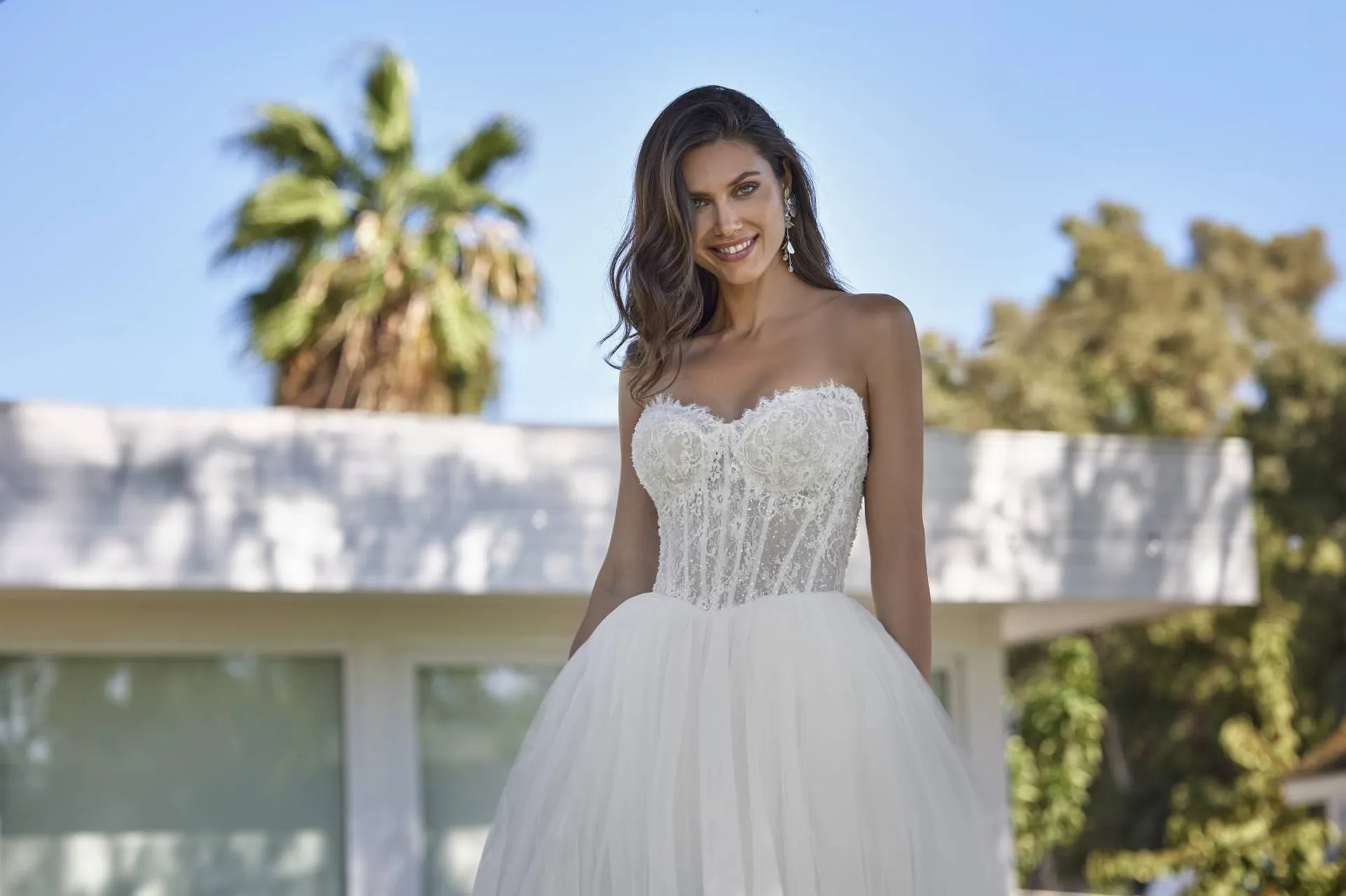 La jupe princesse se distingue par son volume maîtrisé et sa légèreté. Confectionnée en plusieurs couches de tulle fin, elle crée un effet aérien qui accompagne chaque mouvement avec grâce. Contrairement aux robes trop volumineuses ou rigides, celle-ci reste fluide et agréable à porter. Elle donne une impression de flottement, renforçant le côté poétique de l’ensemble. Cette silhouette princesse revisité permet à la mariée de se sentir à la fois majestueuse et libre dans ses mouvements.