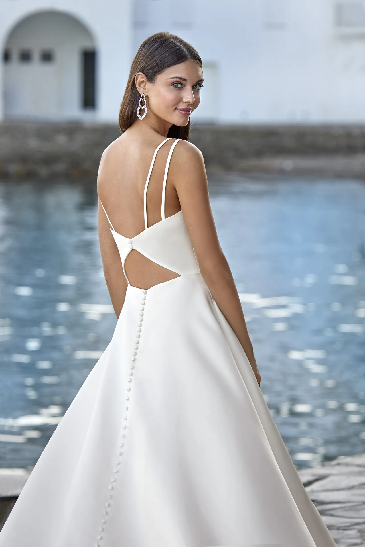 La robe se prête à différents styles de mariage. Son allure sobre et sophistiquée convient parfaitement à une cérémonie moderne en salle, un mariage en extérieur ou sur la plage. La combinaison du satin, de la fente et du dos nu offre un rendu polyvalent qui s’adapte aux différentes ambiances tout en conservant un style marqué et distinctif. Le choix des accessoires peut accentuer cette polyvalence : un voile léger pour un mariage romantique, des bijoux fins pour un effet minimaliste ou des escarpins élégants pour sublimer la silhouette.