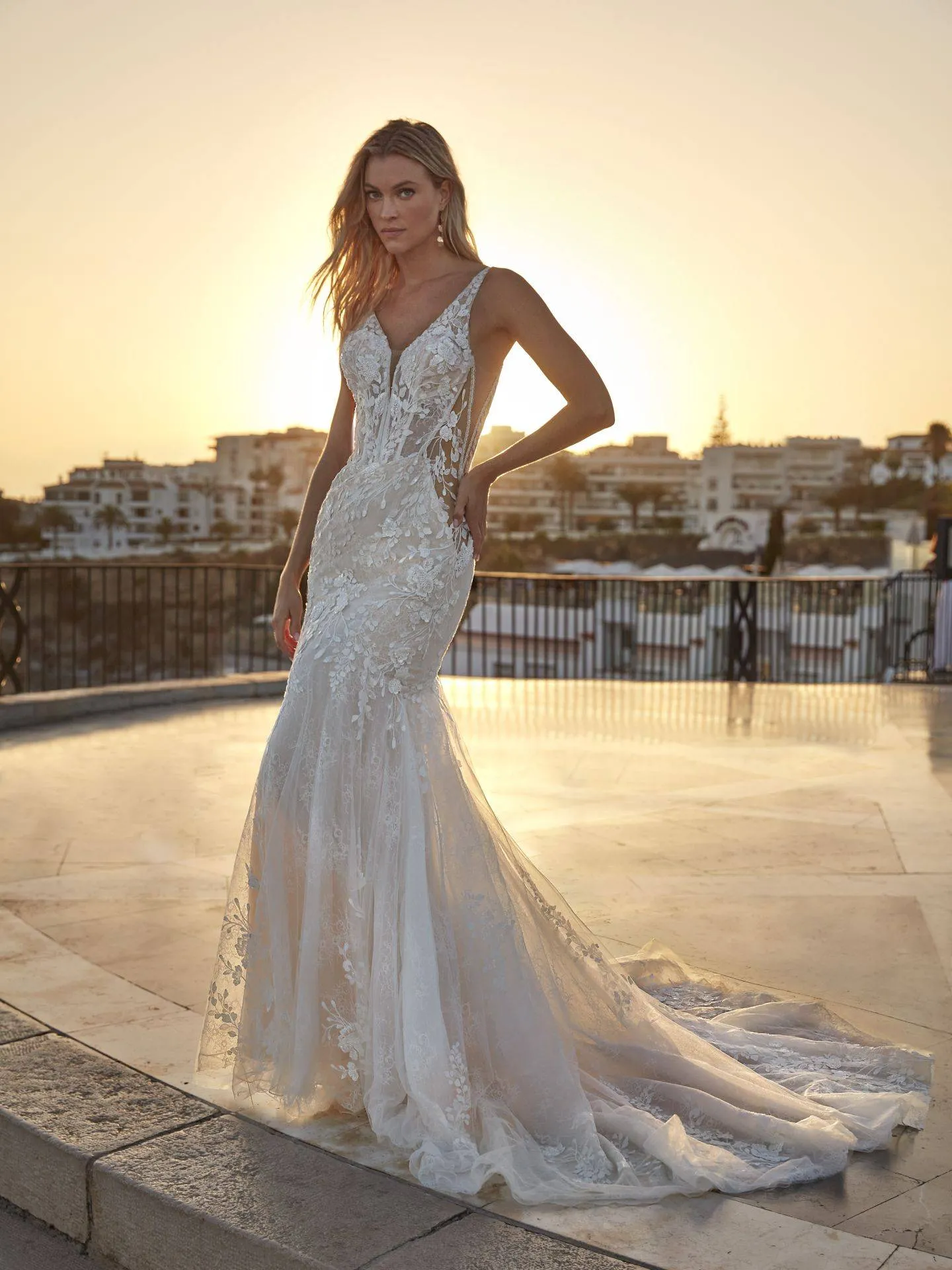 La dentelle, matière emblématique du mariage, apporte une richesse visuelle et une douceur incomparables. Fine et travaillée, elle se décline en motifs floraux, arabesques ou broderies délicates, donnant à chaque robe une personnalité unique. Posée sur un fond nude ou ivoire, la dentelle crée un jeu de transparence subtil qui accentue la sensualité de la coupe sirène sans jamais tomber dans l’excès. Chaque détail semble raconter une histoire de romantisme et de savoir-faire artisanal.