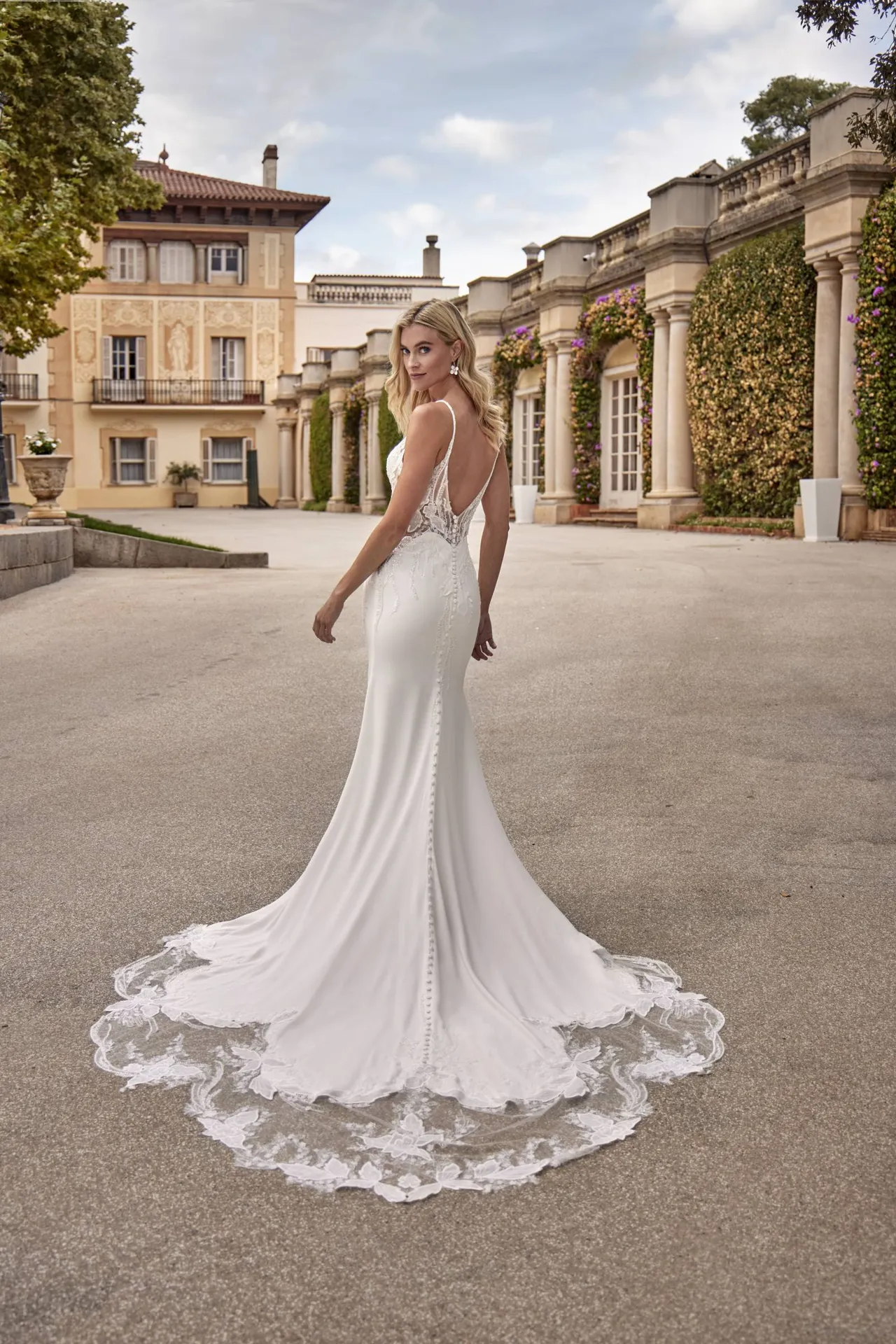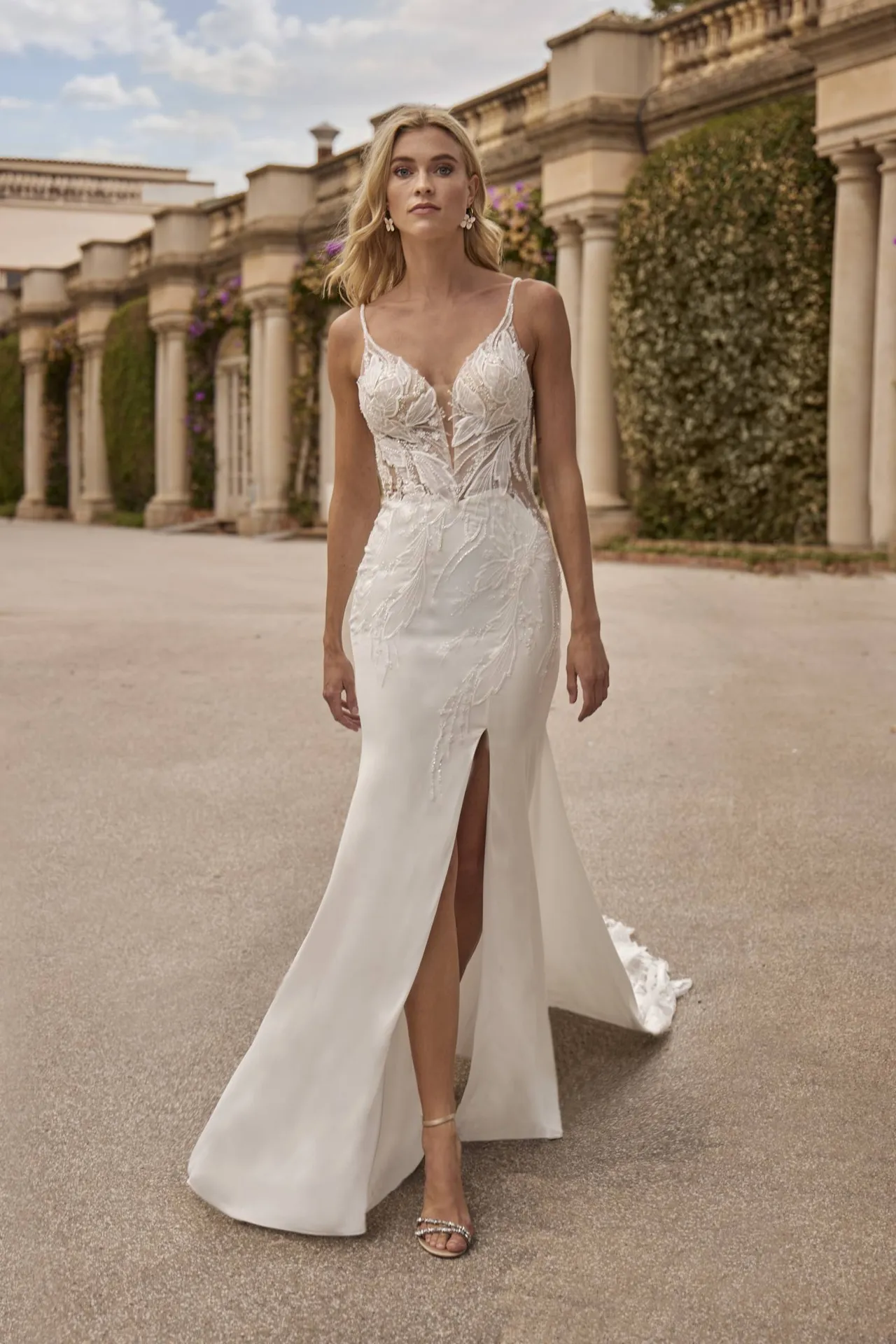 Cette robe s’adresse à une mariée contemporaine, qui souhaite allier sensualité et raffinement. Elle est idéale pour celles qui veulent une silhouette ajustée sans renoncer au confort, et qui recherchent une robe élégante avec des détails modernes.