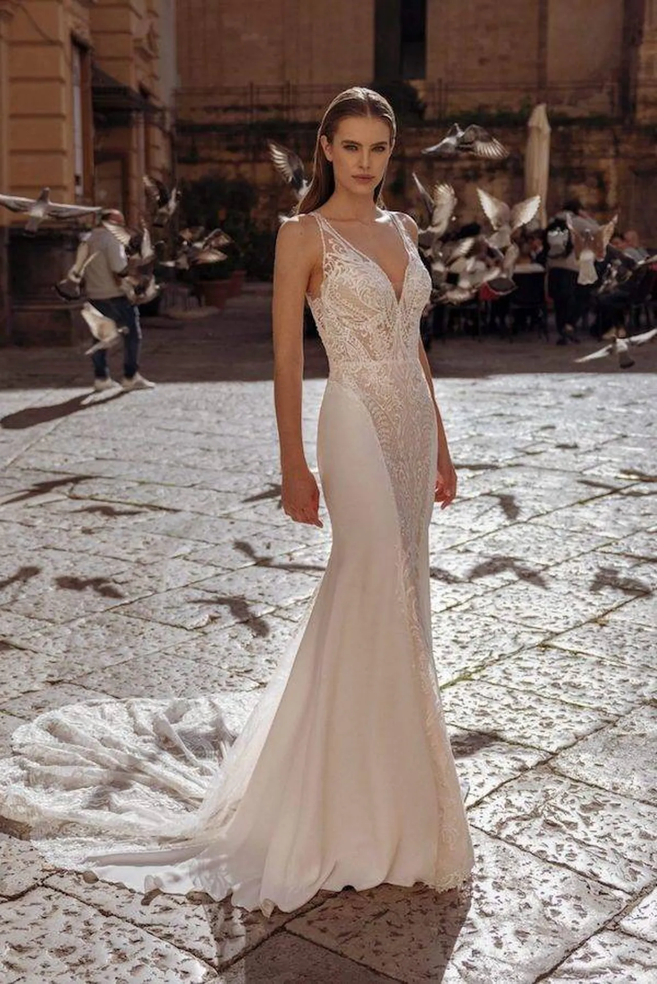 Cette robe est conçue pour une mariée cherchant à exprimer un mélange de sophistication, de confiance et de féminité. Elle s’adapte parfaitement à un mariage chic, que ce soit dans un cadre urbain historique, un château ou une cérémonie élégante en soirée. Elle incarne l’alliance parfaite entre glamour raffiné et romantisme contemporain.
