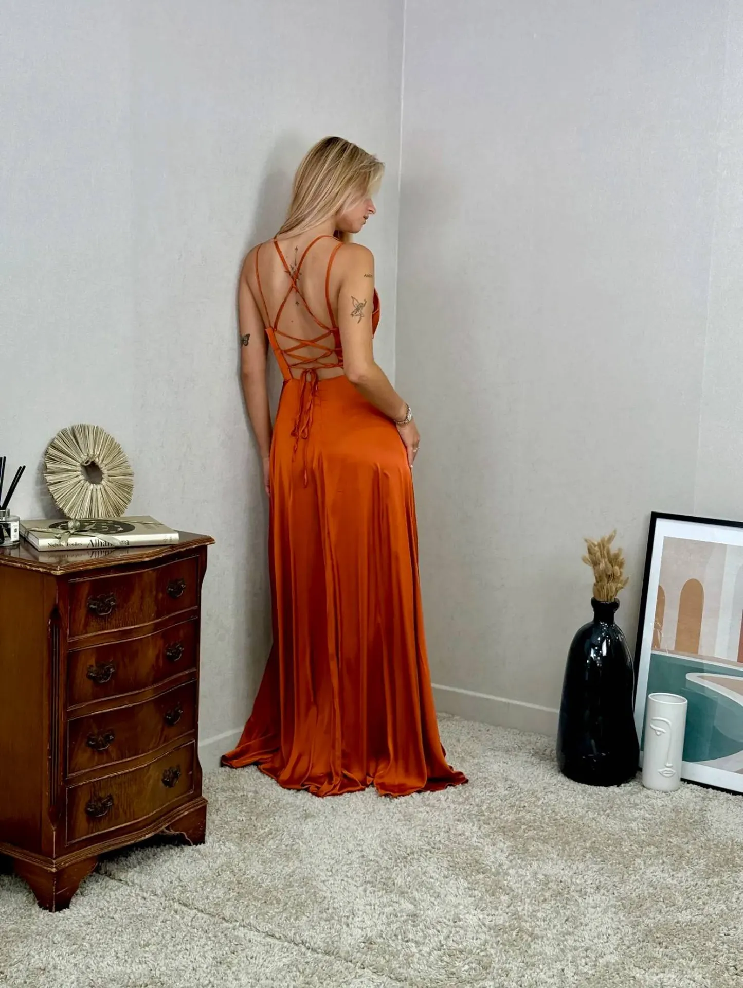 La collection de robes de demoiselle d'honneur de Maelia Mariage offre une variété de styles, de coupes et de longueurs pour convenir à chaque membre du cortège. Des silhouettes longues et fluides aux designs plus courts et ajustés, chaque robe est conçue avec soin pour mettre en valeur la beauté de celle qui la porte. La teinte terracotta ajoute une touche d'originalité tout en restant intemporelle et élégante, ce qui en fait un choix parfait pour compléter le thème et la palette de couleurs de votre mariage.